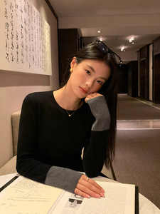 黑拼灰圆领