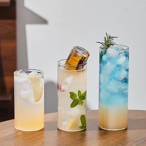 ins高硼硅直筒柯林杯玻璃鸡尾酒杯长岛冰茶杯简约直身长饮调酒杯