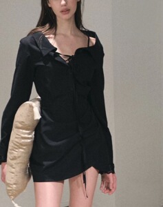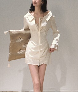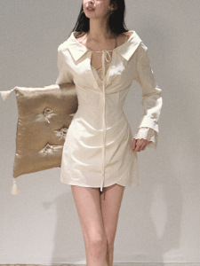 OAKMO/ "日记的那一页"莱赛尔纯欲斜肩修身衬衫连衣裙女掐腰裙子