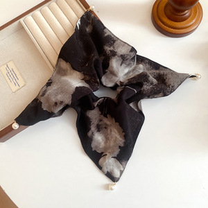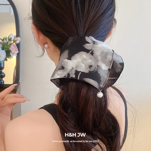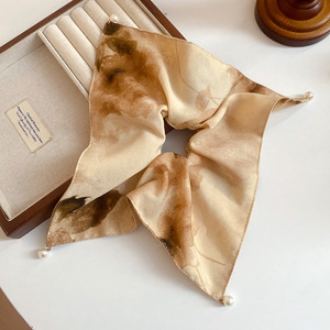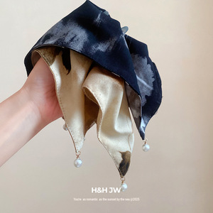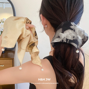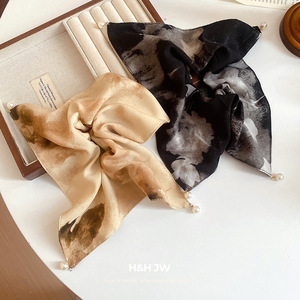 布艺印花珍珠方巾时尚发圈精致高级感大肠发圈抓盘发丸子头女发饰