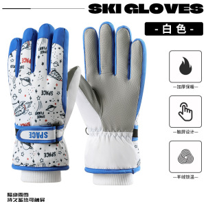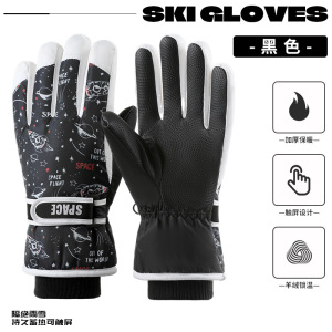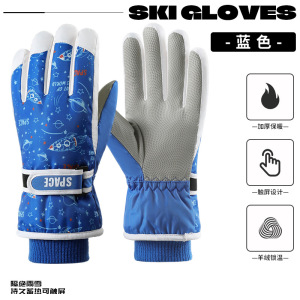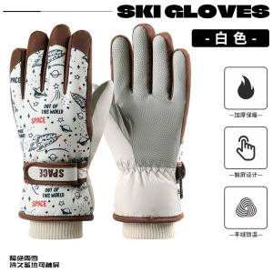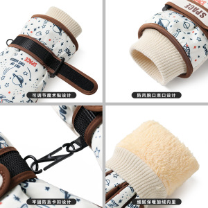 秋冬季可爱卡通太空图案保暖可触屏骑行防水加绒加厚儿童滑雪手套