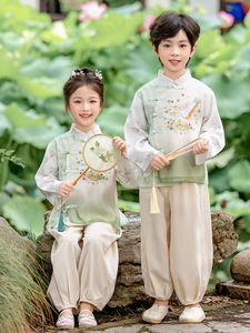 2025新款儿童汉服长袖套装中国风古装男女童新中式唐装中秋演出服