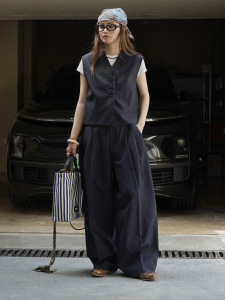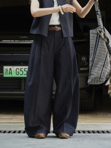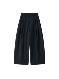 卢浮早秋新款巴黎简约老钱风工字褶弧形西裤垂顺挺括长裤女