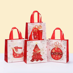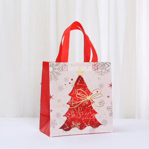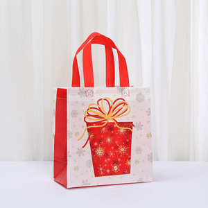 跨境无纺布袋圣诞节主题红色印花蝴蝶结系列手提袋冬日氛围感袋子