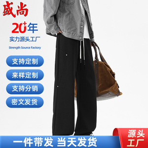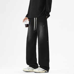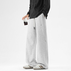 灰色直筒休闲裤男春季新款宽松大码oversize显瘦运动简约阔腿裤子