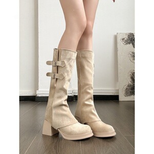 裸色高跟靴子女秋冬季长靴2025新款爆款高筒可拆卸两穿短靴瘦瘦靴