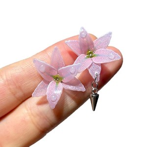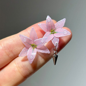 粉色百合花耳饰女小众甜酷风高颜值氛围感独特设计感时尚精致耳环
