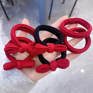 韩版安可拉红色高弹力蝴蝶结毛巾圈发圈时尚简约过年必备发绳发饰