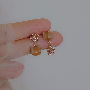 甜美可爱樱花小猫咪不对称耳环女2025新款爆款小众轻奢日常耳饰品