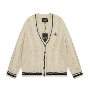 25s秋冬新款vivienne西西家土星字母潮牌V领麻花羊毛混纺针织毛衣