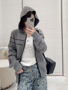 深圳南油正确高版本CD家25新款双面穿连帽长袖针织开衫上衣羊绒衫