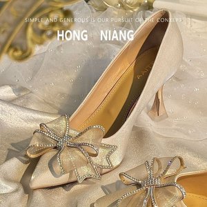 高跟鞋女细跟2025年新款蝴蝶结水钻尖头浅口高跟单鞋女