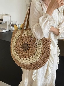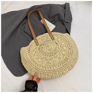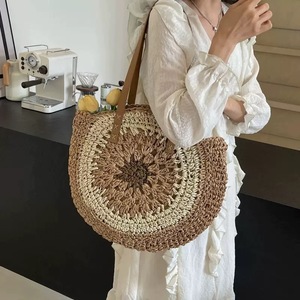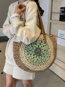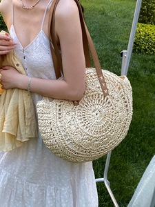 跨境大容量圆形编织包包草编包女新款简约单肩包编织托特包沙滩包