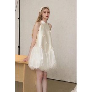 甜美蝴蝶结无袖短裙轻奢小众生日礼服蓬蓬裙气质名媛