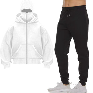 新款欧美跨境秋冬DIY光板ins连帽卫衣套装薄绒外套男女双帽情侣装