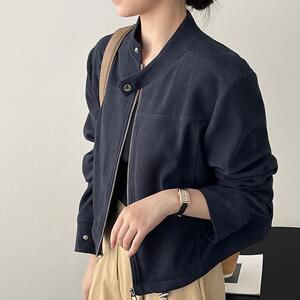 美式复古立领小香风短款外套女休闲帅气BF风夹克机车服上衣雪尼尔