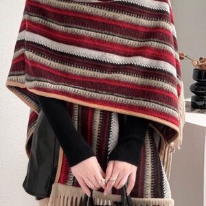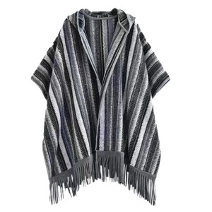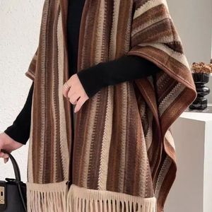 民族风新款披肩秋冬新款仿羊绒韩版条纹流苏保暖斗篷披风披肩带帽