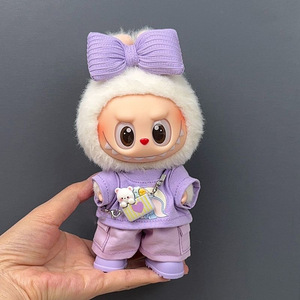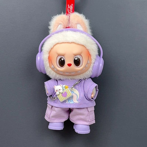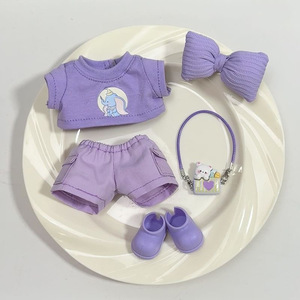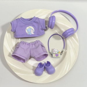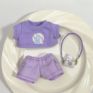 17CM一二三代娃娃衣服玩偶挂件紫T恤工装裤套装坐坐派对娃衣