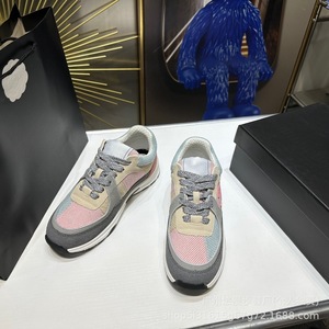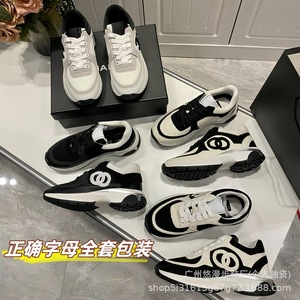 小香风休闲运动鞋女2025新款真皮网面透气增高厚底系带拼色老爹鞋