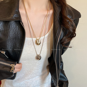 2025新款简约银色水滴吊坠项链女轻奢小众高级感配饰长款毛衣链