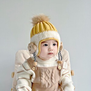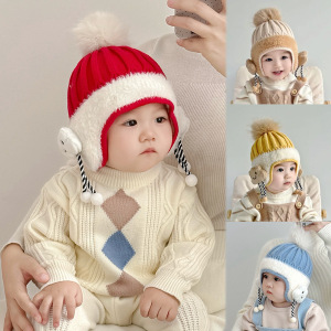 宝宝帽子秋冬季婴儿毛线帽冬帽护耳帽婴幼儿针织帽可爱保暖秋冬款