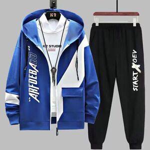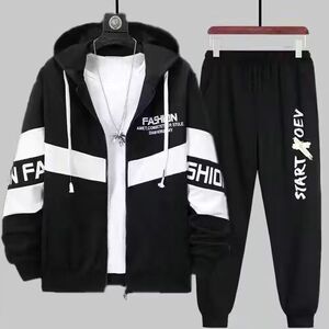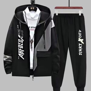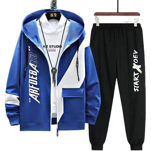 中学生二件套休闲运动服套装拉链开衫卫衣外套男春秋款百搭长裤子