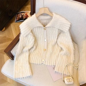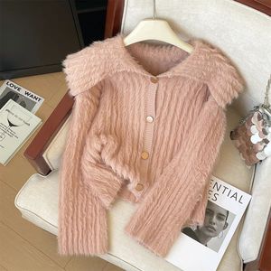 慵懒风软糯水貂绒毛衣外套女春季法式娃娃领针织开衫外穿加厚毛衫
