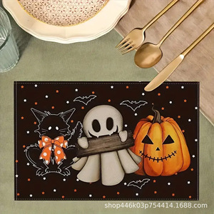 跨境temu秋季万圣节餐垫幽灵南瓜黑猫蝙蝠图案餐垫家居厨房装饰