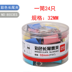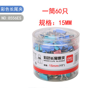 得力8556ES-15mm彩色长尾票夹60只-1筒