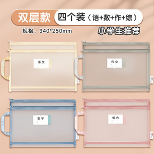 得力PP116双层网纱拉链袋(语/数/综/作业)4个