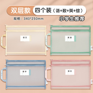 得力PP116双层网纱拉链袋(语/数/英/综/作业)5个