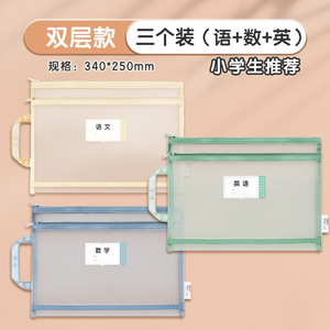 得力PP116双层网纱拉链袋(语/数/英)3个