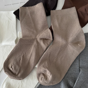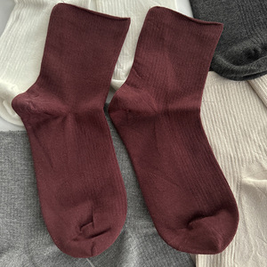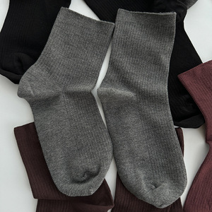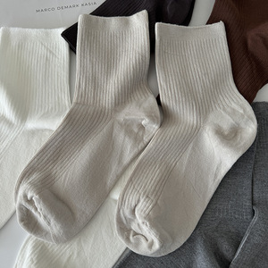 大苌巾SD2369简约纯色竖条纹袜子超柔透气百搭无骨袜男女同款