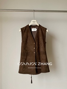 CZ ZHANG秋美式复古废土风中长款绣花马甲女绑带休闲外套B37660