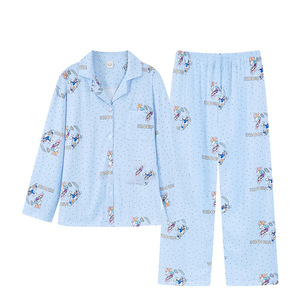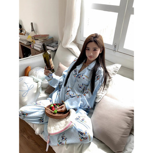 云朵棉纱布睡衣女春秋季长袖套装卡通跨境家居服慵懒风大码可外穿