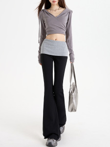 春季双色撞色拼接微喇叭裤女2025年新款垂感高腰修身显瘦马蹄裤女