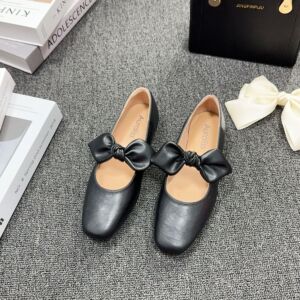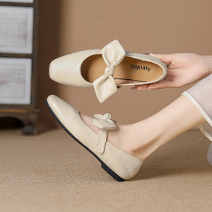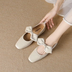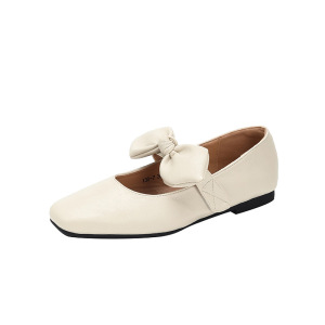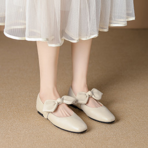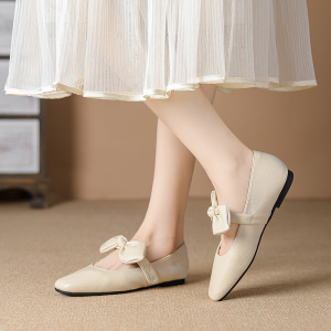 羊皮版~甜美方头蝴蝶结玛丽珍仙女风软底单鞋魔术贴一字带甜美风