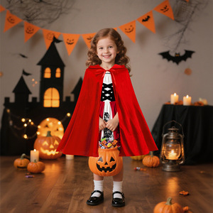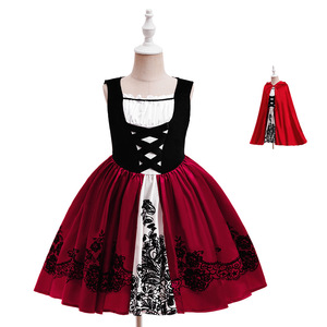 跨境新款小红帽服装无袖连衣裙万圣节服装年会舞台带披风派对礼服