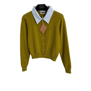 2025秋冬南油新款英伦风logo刺绣可拆卸条纹翻领长袖针织开衫上衣