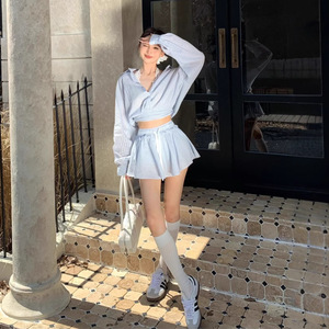 RHGD实拍2025 优雅洋气纯欲修身显瘦条纹衬衣半身裙套装