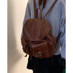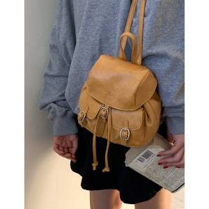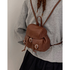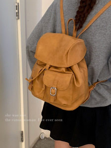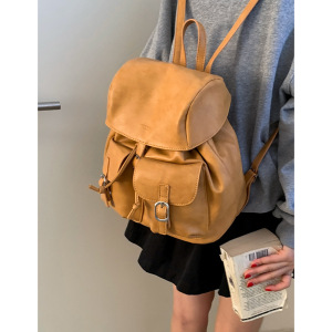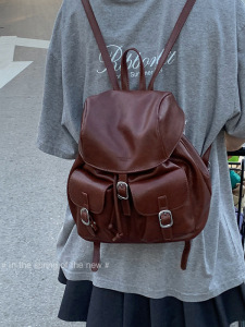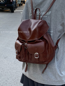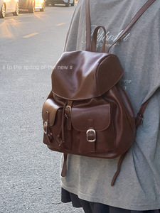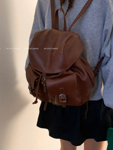 复古质感手提水桶包包女士包2025秋季新款大容量双肩包休闲书包