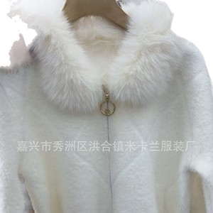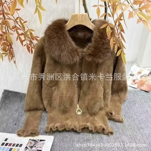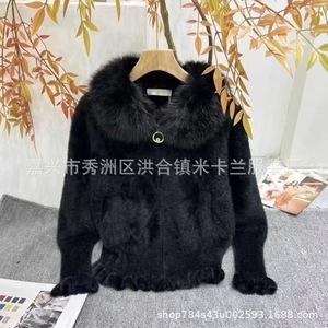 2025年新款环保毛领时尚气质百搭拉链秋冬女厚皮草外套针织开衫