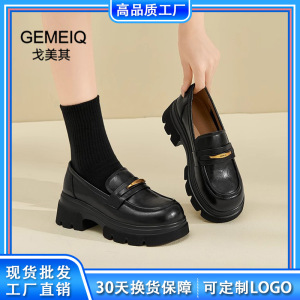 戈美其新款乐福鞋2025秋季英伦风增高百搭粗跟软底不累脚休闲单鞋