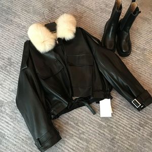 2025秋冬新品加绒加厚皮衣短款可拆兔毛毛领夹克外套保暖棉服女潮