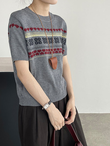 滔川 高级复古提花针织短袖T恤女2025秋上新套头减龄上衣YL528