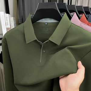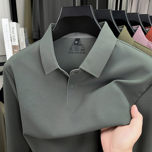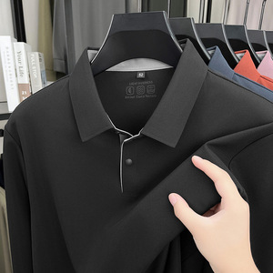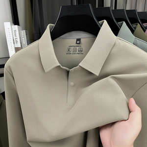 高端春秋季无痕冰丝长袖T恤男款商务翻领纯色锦氨上衣薄款polo衫