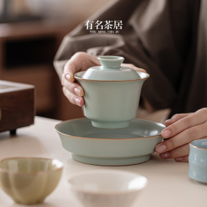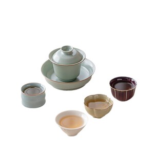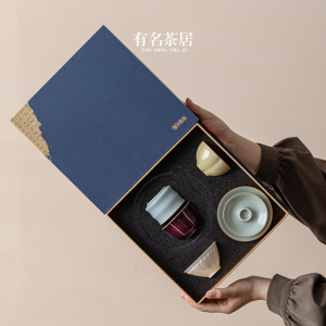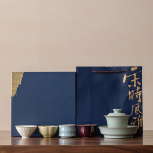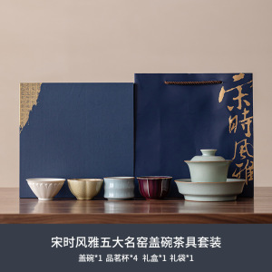 故宫国风文创五大名窑茶具一碗四杯家用盖碗茶杯功夫茶具套装送礼