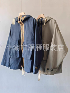 45*r秋季上新叶山限定!细帆布全棉宽松休闲长袖连帽大口袋外套