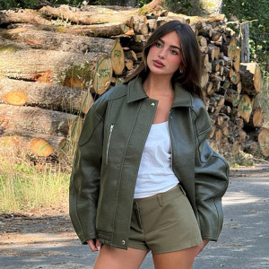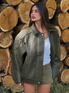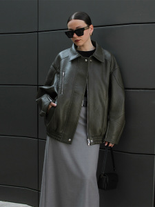 2025年欧美跨境秋季新款女装宽松休闲短款拉链皮衣夹克百搭外套