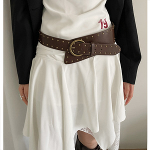 复古波西米亚风棕色腰带女小众铆钉宽版皮带民族风配裙子腰封配饰